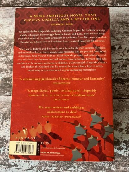 When war is declared and the outside world intrudes, the twin scourges of religion and nationalism lead to forced marches and massacres, and the peaceful fabric of life is destroyed. Birds Without Wings is a novel about the personal and political costs of war, and about love: between men and women; between friends; between those who are driven to be enemies; and between Philothei, a Christian girl of legendary beauty, and Ibrahim the Goatherd, who has courted her since infancy. Epic in sweep, intoxicating in its sensual detail, it is an enchanting masterpiece.
