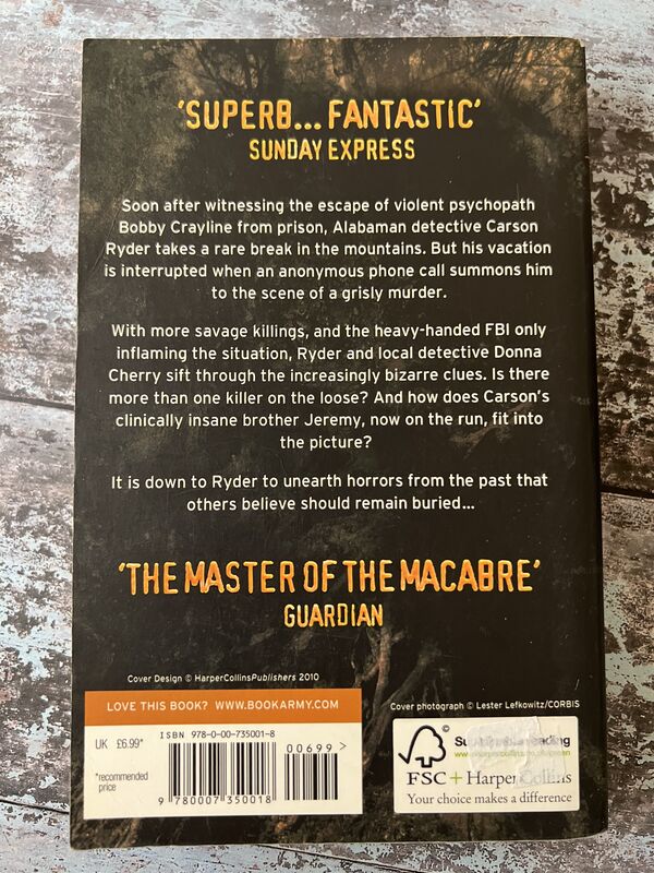 Soon after witnessing the escape of violent psychopath Bobby Crayline from prison, Alabaman detective Carson Ryder takes a rare break in the mountains. But his vacation is interrupted when an anonymous phone call summons him to the scene of a grisly murder.