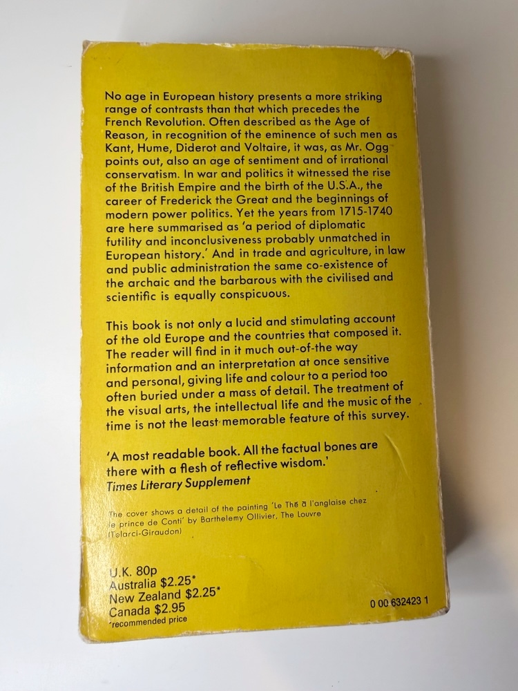 This book is not only a lucid and stimulating account of the old Europe and the countries that composed it. The reader will find in it much out-of-the way information and an interpretation at once sensitive and personal, giving life and colour to a period too often buried under a mass of detail. The treatment of the visual arts, the intellectual life and the music of the time is not the least memorable feature of this survey.