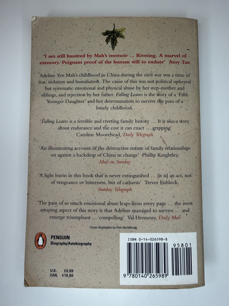 Adeline Yen Mah’ childhood in China during the civil war was a time of fear, isolation and humiliation. The cause of this was not political upheaval but systematic emotional and physical abuse by her step-mother and siblings, and rejection by her father. Falling Leaves is the story of a ‘Fifth Younger Daughter” and her determination to survive the pain of a lonely childhood.