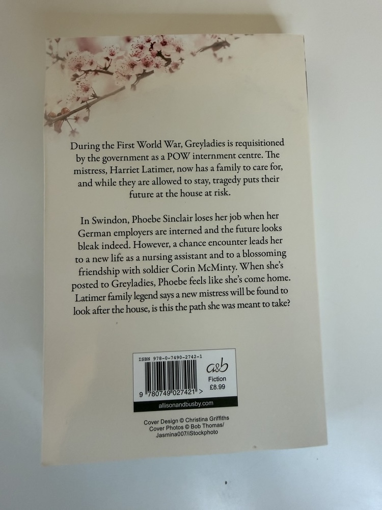 A chance encounter leads her to a new life as a nursing assistant in the VAD (voluntary aid detachments), and to a blossoming friendship with Captain Corin McMinty. When Phoebe is posted to the hospital at Greyladies, she feels she’s come home. But Frank is still pursuing her and Corin has his own problems. With obstacles at every turn, can Phoebe find happiness and embrace the role of mistress of Greyladies