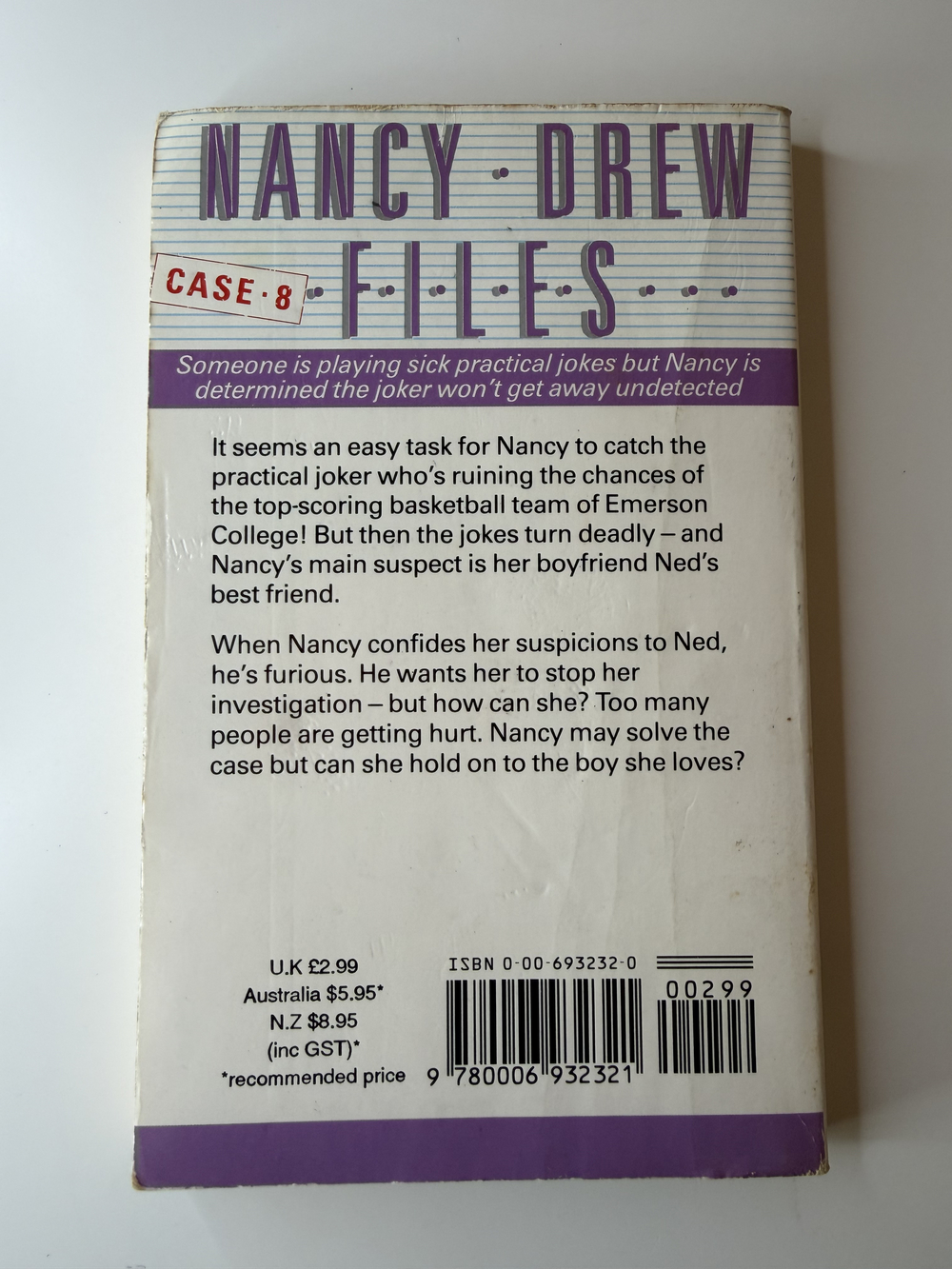 It seems an easy task for Nancy to catch the practical joker who’s ruining the chances of the top-scoring basketball team of Emerson College! But then the jokes turn deadly – and Nancy’s main suspect is her boyfriend Ned’s best friend.