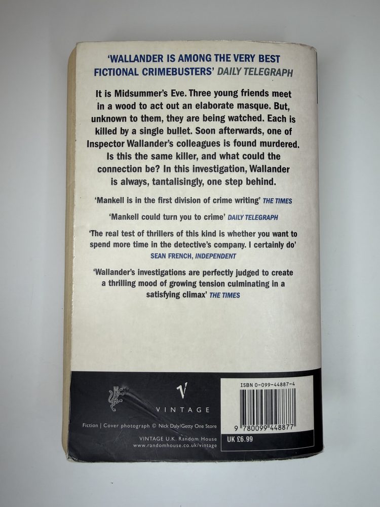 It is Midsummer’s Eve. Three young friends meet in a wood to act out an elaborate masque. But, unkown to them, they are being watched. Each is killed by a single bullet. Soon afterwards, one of Inspector Wallander’s colleagues is found murdered. Is this the same killer, and what could the connection be?