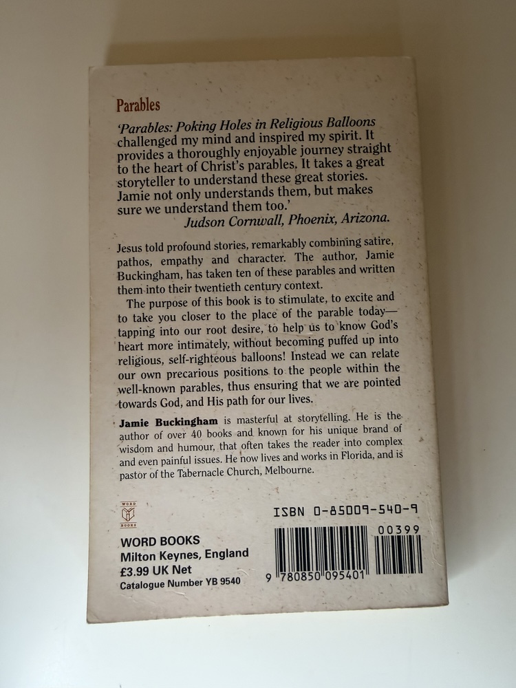 Jesus told profound stories, remarkably combining satire, pathos, empathy and character. The author, Jamie Buckingham, has taken ten of these parables and written them into their twentieth century context.