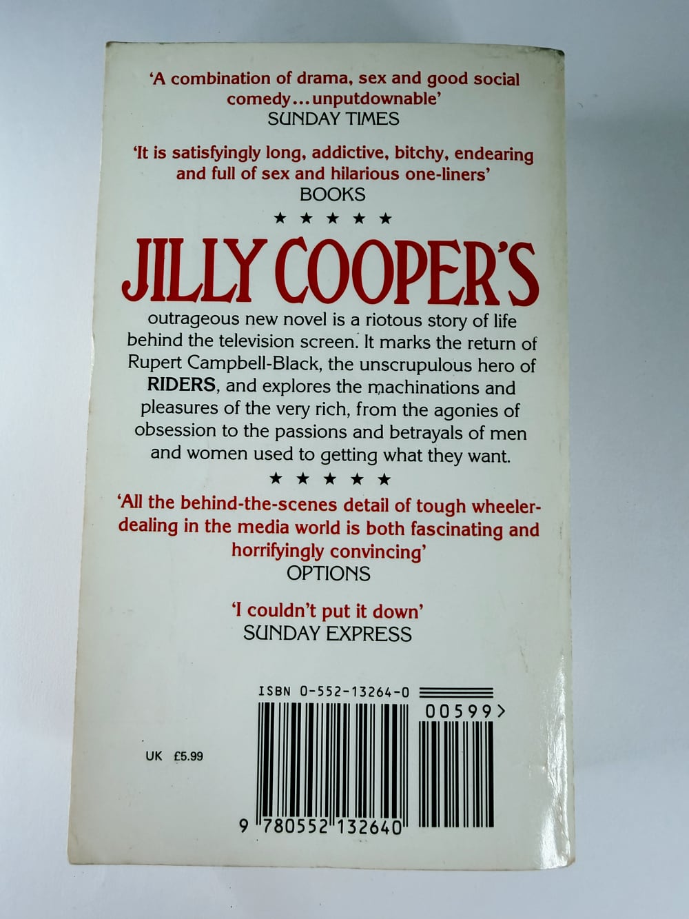 Jilly Cooper’s outrageous new novel is a riotous story of life behind the television screen. It marks the return of Rupert Campbell-Black, the unscrupulous hero of RIDERS, and explores the machinations and pleasures of the very rich, from the agonies of obsession to the passions and betrayals of men and women used to getting what they want.