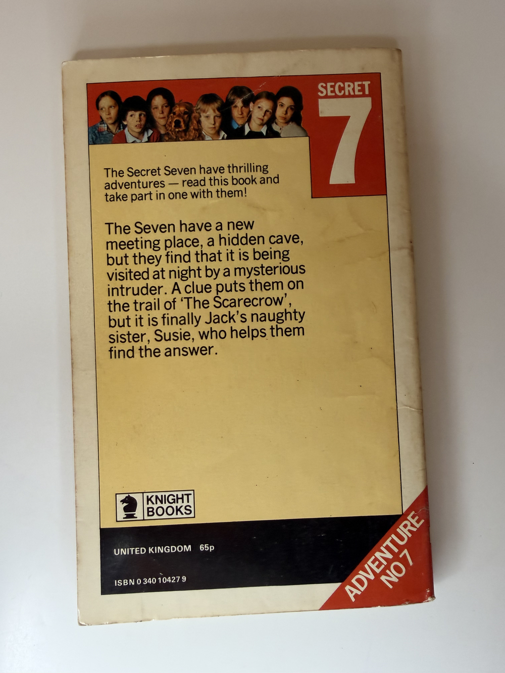 The Seven have a new meeting place, a hidden cave, but they find that it is being visited at night be a mysterious intruder. A clue puts them on the trail of ‘The Scarecrow’, but it is finally Jack’s naughty sister, Susie, who helps them find the answer.