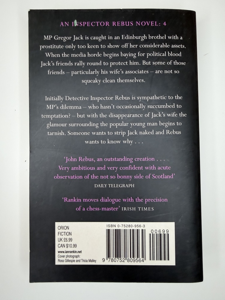Initially Detective Inspector Rebus is sympathetic to the MP’s dilemma—who hasn’t occasionally succumbed to temptation? —but with the disappearance of Jack’s wife the glamour surrounding the popular young man begins to tarnish. Someone wants to strip Jack naked and Rebus wants to know why…