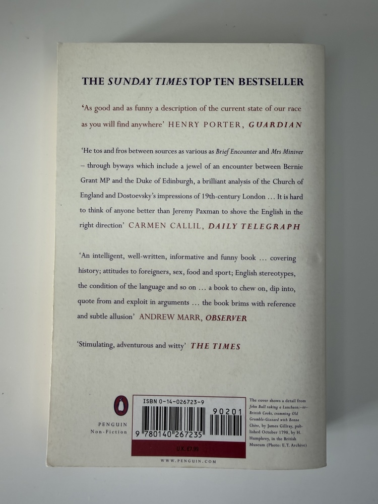 A brilliantly researched, hugely entertaining study of the English by Britain’s best-known broadcaster. In the light of membership of Europe, the loss of an Empire and a devolved United Kingdom, the English no longer know who they are. Covering every aspect of the English identity (from cricket to Cumberland sausages, St George to Bernie Grant, the Book of Common Prayer to Cool Britannia, John Bull to football thugs) and combining popular history with incisive interviews, Jeremy Paxman provides some fascinating and timely answers.