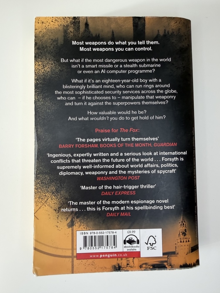 The Fox is a race-against-time thriller across continents to find and capture, or protect and save, an asset with the means to change the balance of world power. Whatever happens he must not fall into the wrong hands. Because what follows after that is unthinkable…