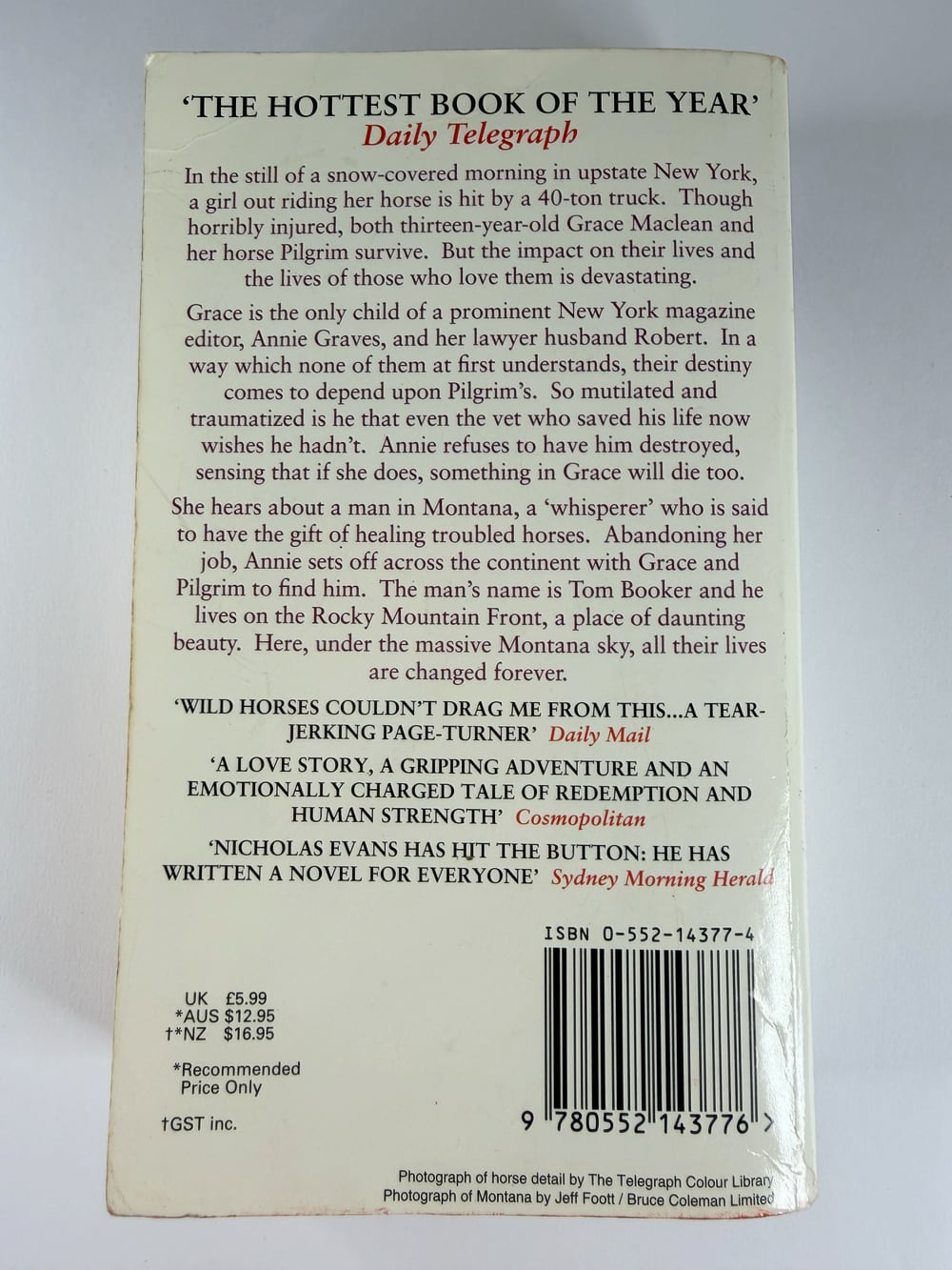She hears about a man in Montana, a ‘whisperer’ who is said to have the gift of healing troubled horses. Abandoning her job, Annie sets off across the continent with Grace and Pilgrim to find him. The man’s name is Tom Booker and he lives on the Rocky Mountain Front, a place of daunting beauty. Here, under the massive Montana sky, all their lives are changed forever.