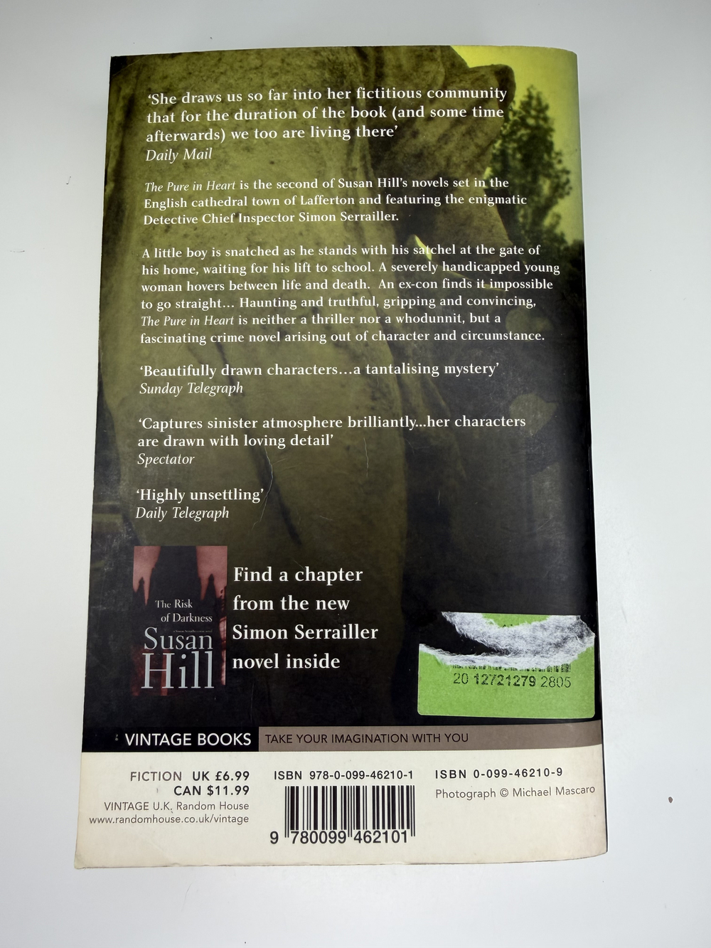 The Pure in Heart is the second of Susan Hill’s novels set in the English Cathedral town of Lafferton and featuring the enigmatic policeman, Detective Chief Inspector Simon Serrailler. A little boy is kidnapped as he stands with his satchel at the gate of his home, waiting for his lift to school. A severely handicapped young woman hovers between life and death. An ex-con finds it impossible to stay straight…Haunting and truthful, gripping and convincing, The Pure in Heart is neither a thriller nor a whodunnit, but a fascinating crime novel arising out of character and circumstance.