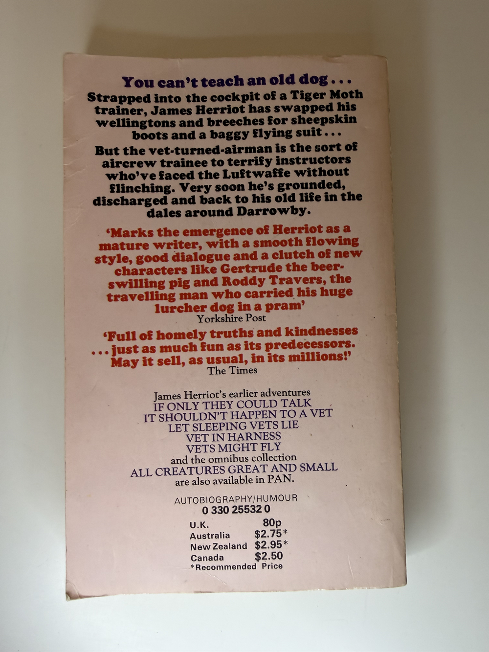 Strapped into the cockpit of a Tiger Moth trainer, James Herriot has swapped his wellingtons and breeches for sheepskin boots and a baggy flying suit.